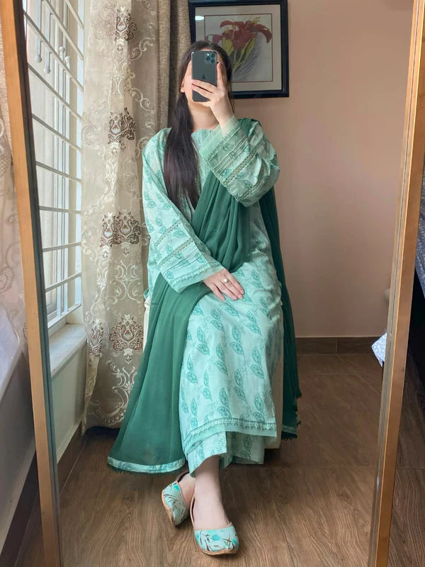 Refresh your wardrobe with this beautifully crafted premium lawn outfit — a perfect fusion of graceful detailing and all-day comfort.