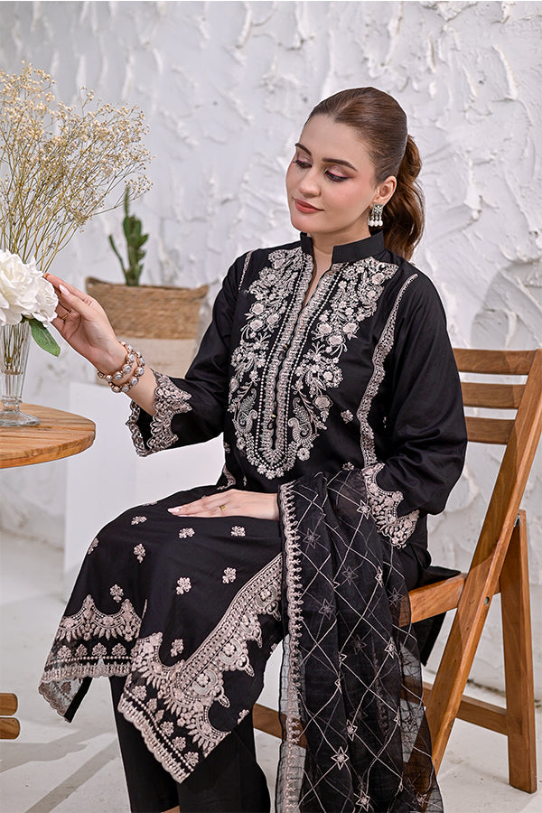 PIECES PREMIUM LAWN 6 PIECE UNSTITCHED EMBROIDERED MONOCHROME :